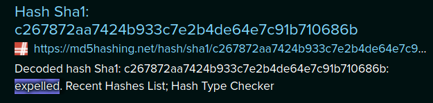 Looking at the results, we seem to have a MD5 encrypted hash to work with, let's google the hash with the keyword MD5 in order to see if google knows the original password that was there before the md5 hashing.