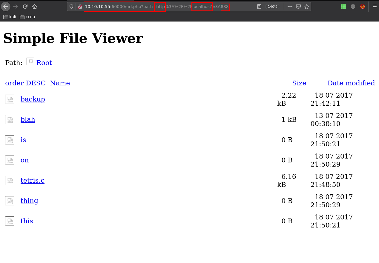 Target: http://10.10.10.55:60000/url.php?path=http://localhost:FUZZ