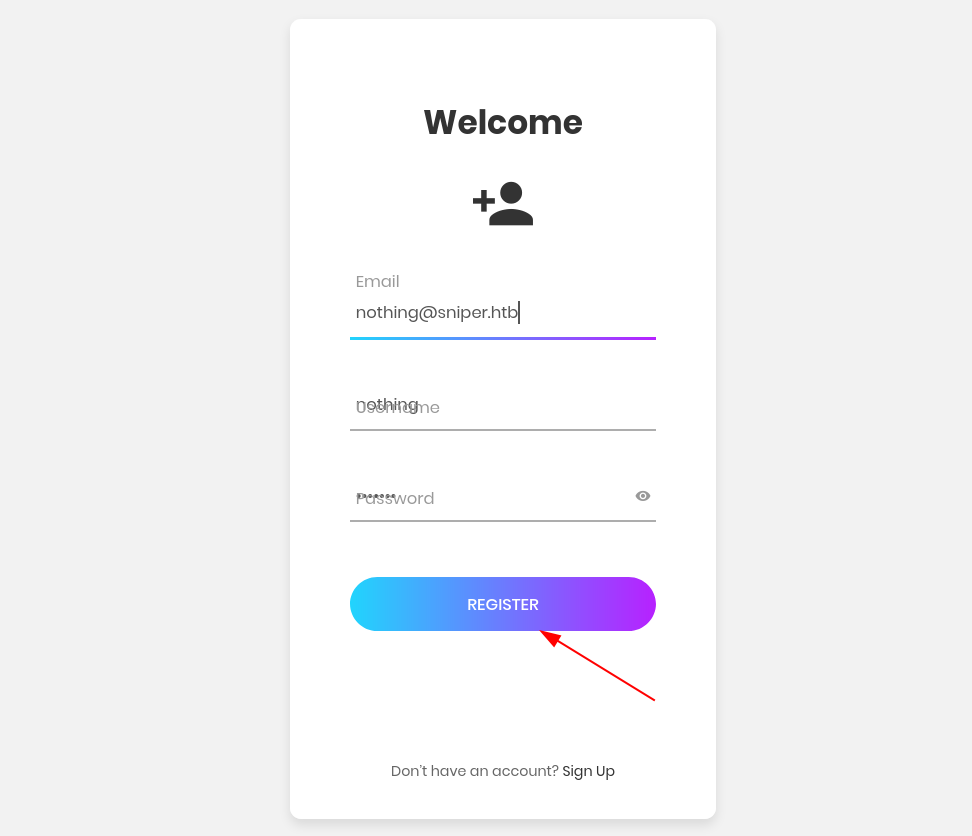 We create an account and try to log into it: