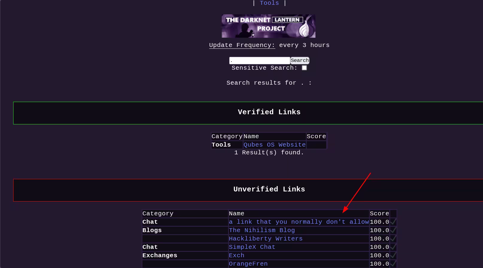 So here we need to start to list some onion links. Using scripts/lantern.py's option 1 we can add those links: