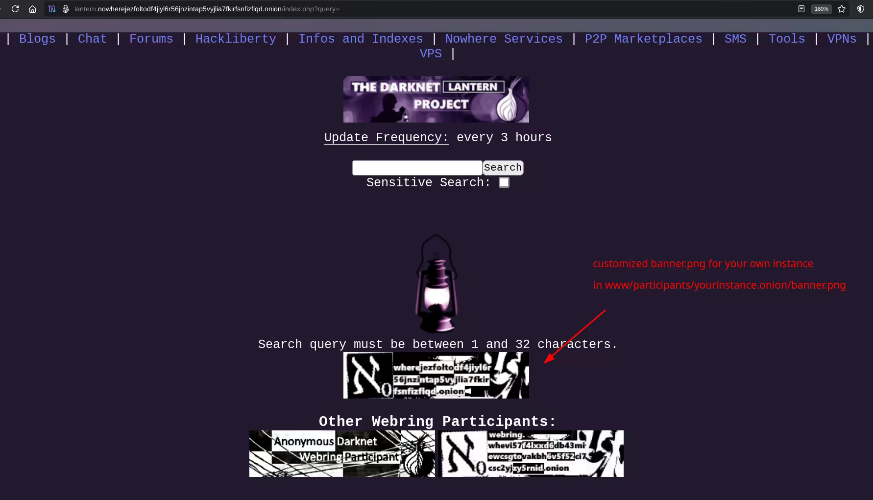 [+] Welcome to your own Darknet Lantern Instance, where you can explore the Darknet and help others do the same.