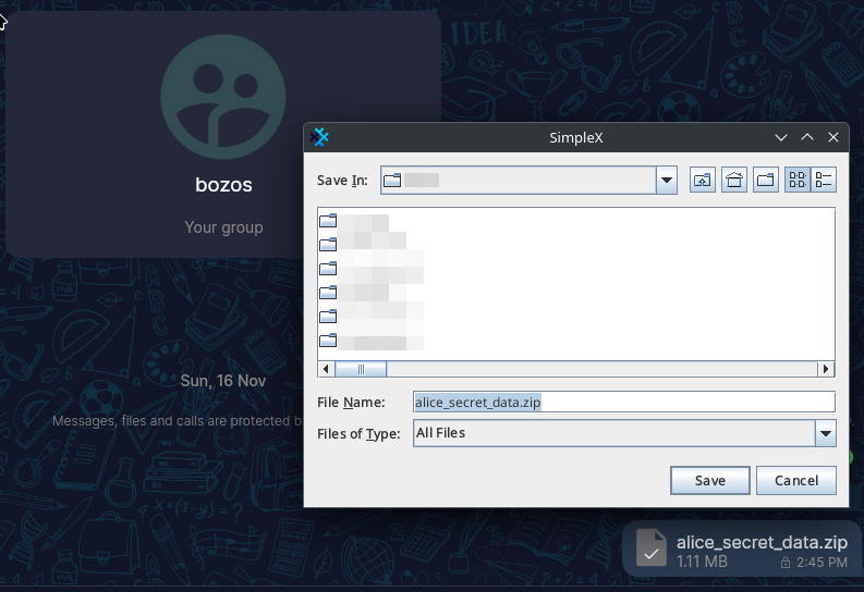 To download the file, click on it and SimpleX will prompt you for where to save it