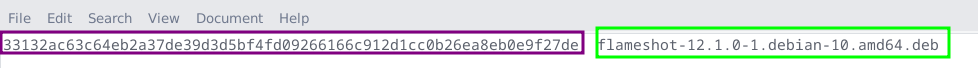 shasum -a 256 flameshot-12.1.0-1.debian-10.amd64.deb(software file)