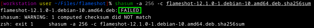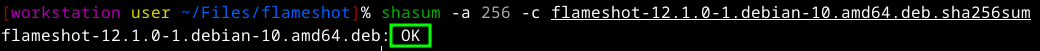 shasum -a 256 -c flameshot-12.1.0-1.debian-10.amd64.deb.sha256sum(sha256sum file) -