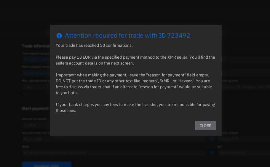 And that's it! We now covered one of the fastest and easiest way people can purchase and sell Monero in the EU region. Coming up next we'll cover how to do the most popular option there was on LocalMonero: Cash by Mail, it is the best option if you intend to exchange in large quantities.