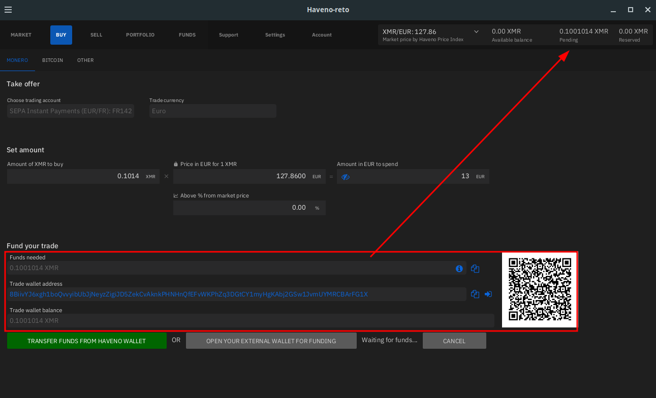 Haveno DEX Bank Transfer (ex: SEPA) -> XMR transaction