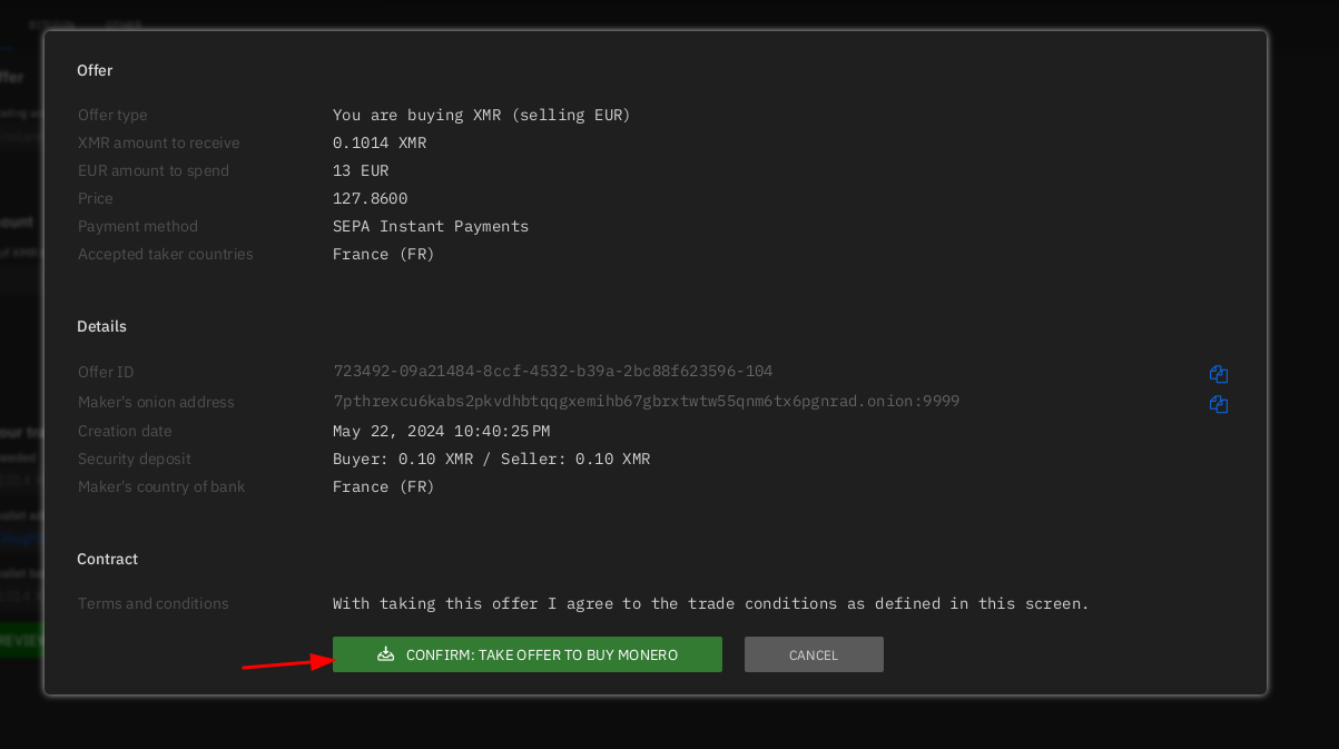 Then Alice creates the new Offer to sell her XMR: