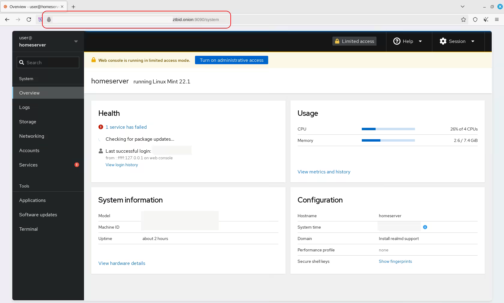 Making Your Home Server Reachable via a Hidden Service (SSH + Cockpit + VNC via Tor)