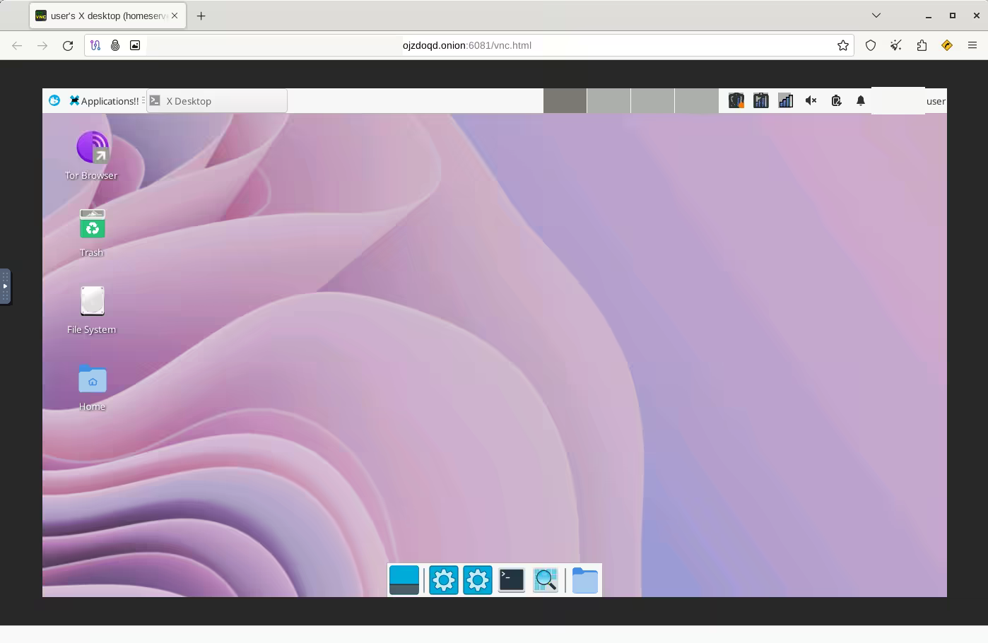 Now you'll restart your home server, and after it boots, you should be able to go to your noVNC view through the onion by using the TOR browser on your client machine.