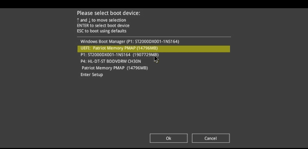 Boot device Selection > his USB stick
