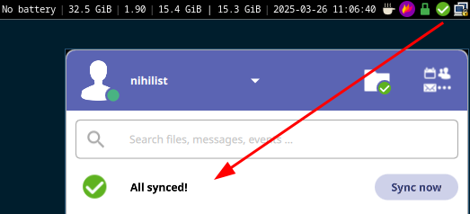 0 -rw-r--r-- 1 nihilist nihilist 0 Mar 26 11:04 .nextcloudsync.log