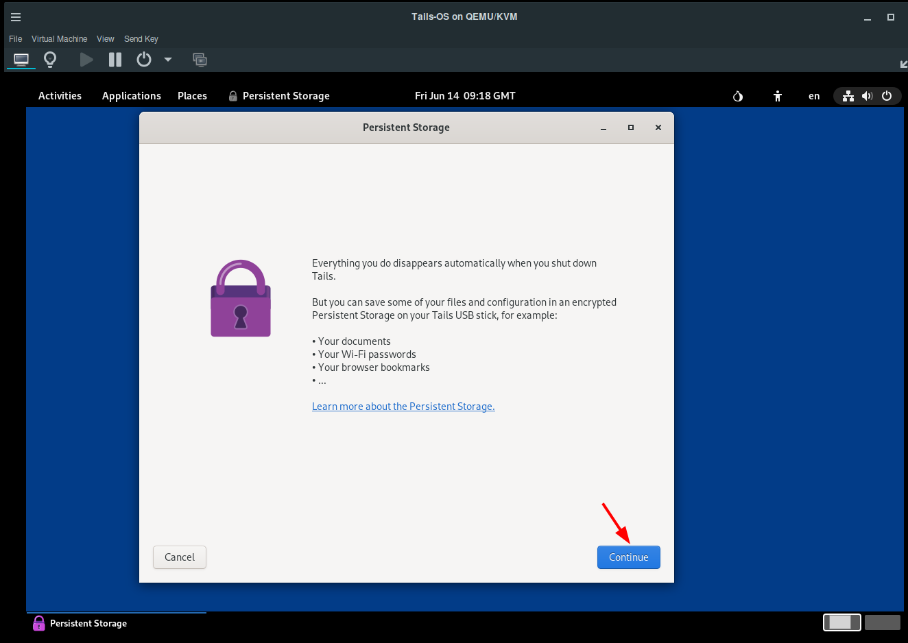 And that's it! We managed to run tails OS from a QEMU VM and install some software into the persistent storage.